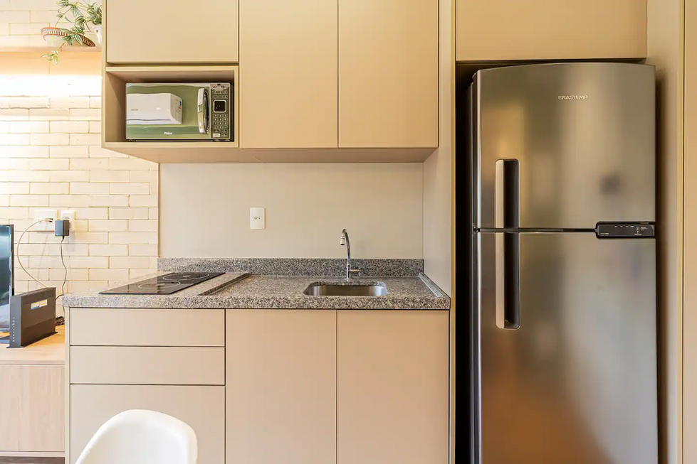 Neste compacto apartamento de 25m², o desafio foi criar um apartamento completo para ser usado como locação temporária. As cores suaves dominam o espaço, proporcionando uma sensação de tranquilidade, enquanto os tijolinhos expostos nas paredes adicionam um toque de rusticidade e charme. O objetivo é oferecer um refúgio confortável e estiloso, perfeito para quem busca um lugar para relaxar em São Paulo.